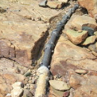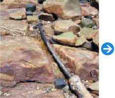 汀部においてケーブルが露出している箇所は、転石等の移動でケーブルが磨耗し、故障の原因となることがあります。ケーブルの磨耗・損傷を防ぐ為、鋳鉄管を取付けてケーブルを防護します。